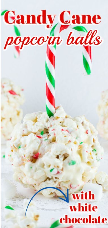 This fantastic Holiday treat! Candy Cane Popcorn Balls are made with white chocolate, candy canes and marshmallows.