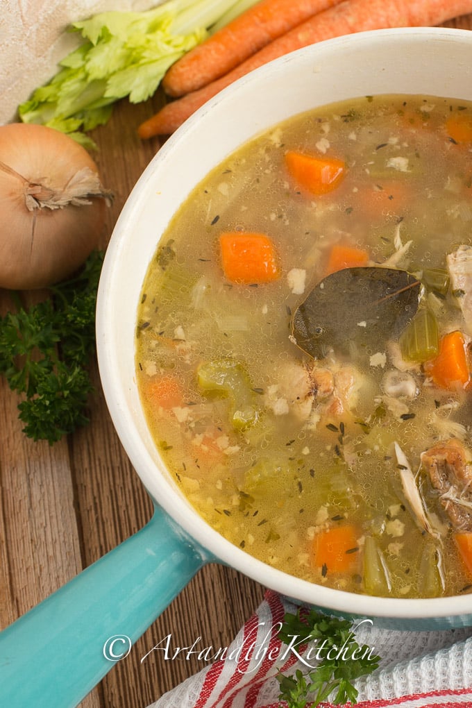 Wholesome Homemade Chicken Stock is so easy to make and incredibly flavourful. You may never buy store-bought again. Perfect for homemade soup!