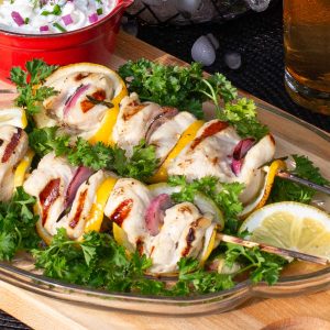 The lemon herb marinade transforms ordinary chicken into a tender chicken that is bursting with flavor! But don’t just save this marinade for chicken, it tastes great for making pork kabobs, shrimp kabobs and salmon kabobs! Serve with Homemade Tzatziki Sauce and Watermelon Mint Salad for a meal that is perfect for summertime barbecues!