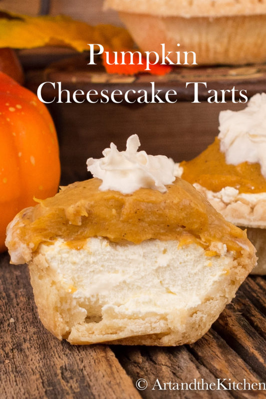 This recipe for Pumpkin Cheesecake Tarts is a snap to make and only requires baking of the tart shells. These tarts have a smooth creamy cheese layer, topped with a pumpkin pudding layer, then finished with a dollop of whipped cream! If you like pumpkin desserts be sure to try my Pumpkin Bread Pudding or Pumpkin Pecan Cookies.